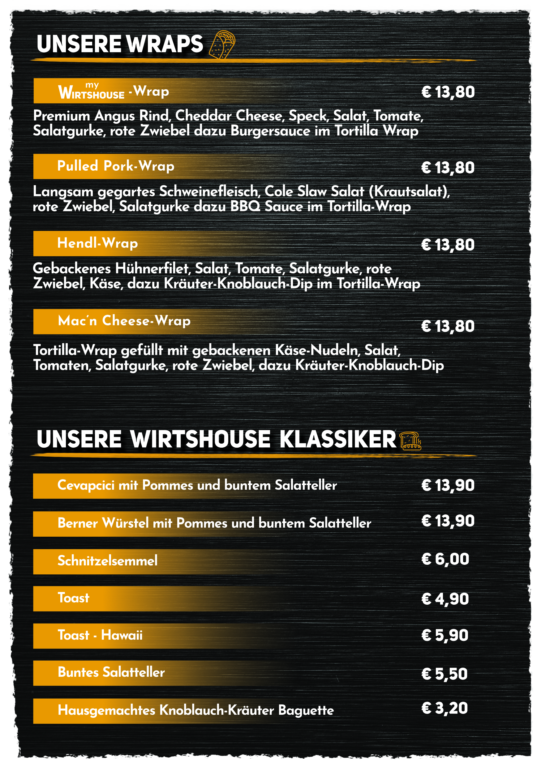 Unsere Speisen in dieser Karte sind immer verfügbar!